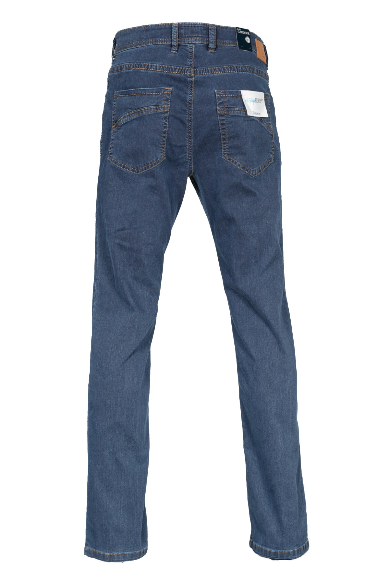 • Джинсы 5-Pocket полуприлегающего силуэта с классической посадкой. Модель выполнена из сертифицированной ткани "AirTripDenim". Гульфик на молнии. Шлевки под ремень. Три кармана спереди и два накладных сзади. Внешние швы обработаны контрастной строчкой. Логотип «Atelier Gardeur» выполнен из натуральной кожи. Джинсы можно компактно упаковать в чехол, очень удобно для путешествий. Прекрасно сочетаются с сорочками и трикотажем.