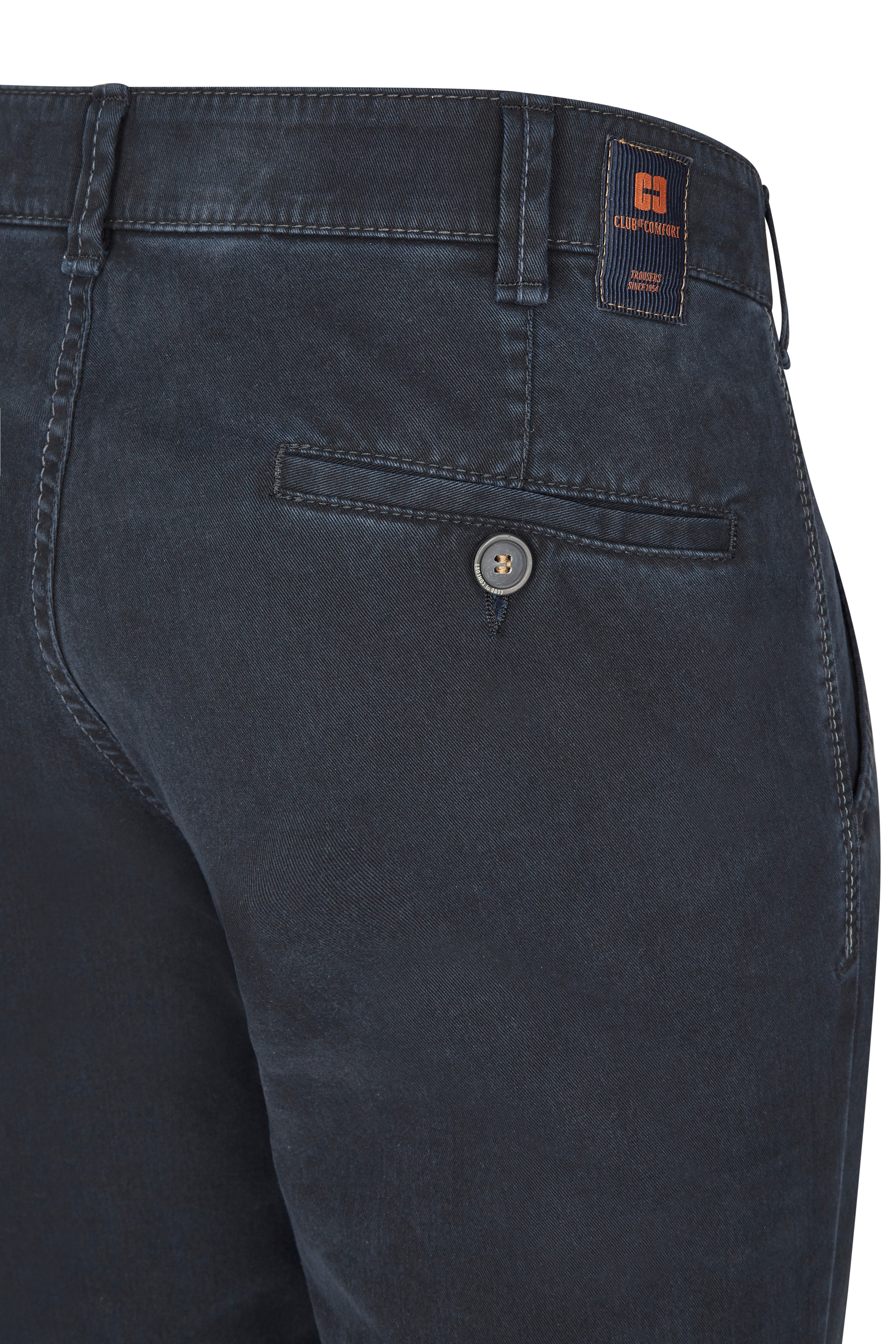 • Брюки полуприлегающего силуэта с классической посадкой. Модель выполнена из сертифицированной ткани «HIGH STRETCH» -материал повышенной эластичности, устойчивый к деформации, что дает дополнительный комфорт при носке. Гульфик на молнии, пояс застегивается на пуговицу. На внутренней стороне пояса, имеется прорезиненная тесьма. Имеет два боковых кармана и два задних на застежках. Все пуговицы из натурального рога. Логотип «Club of Comfort» выполнен из кожи.