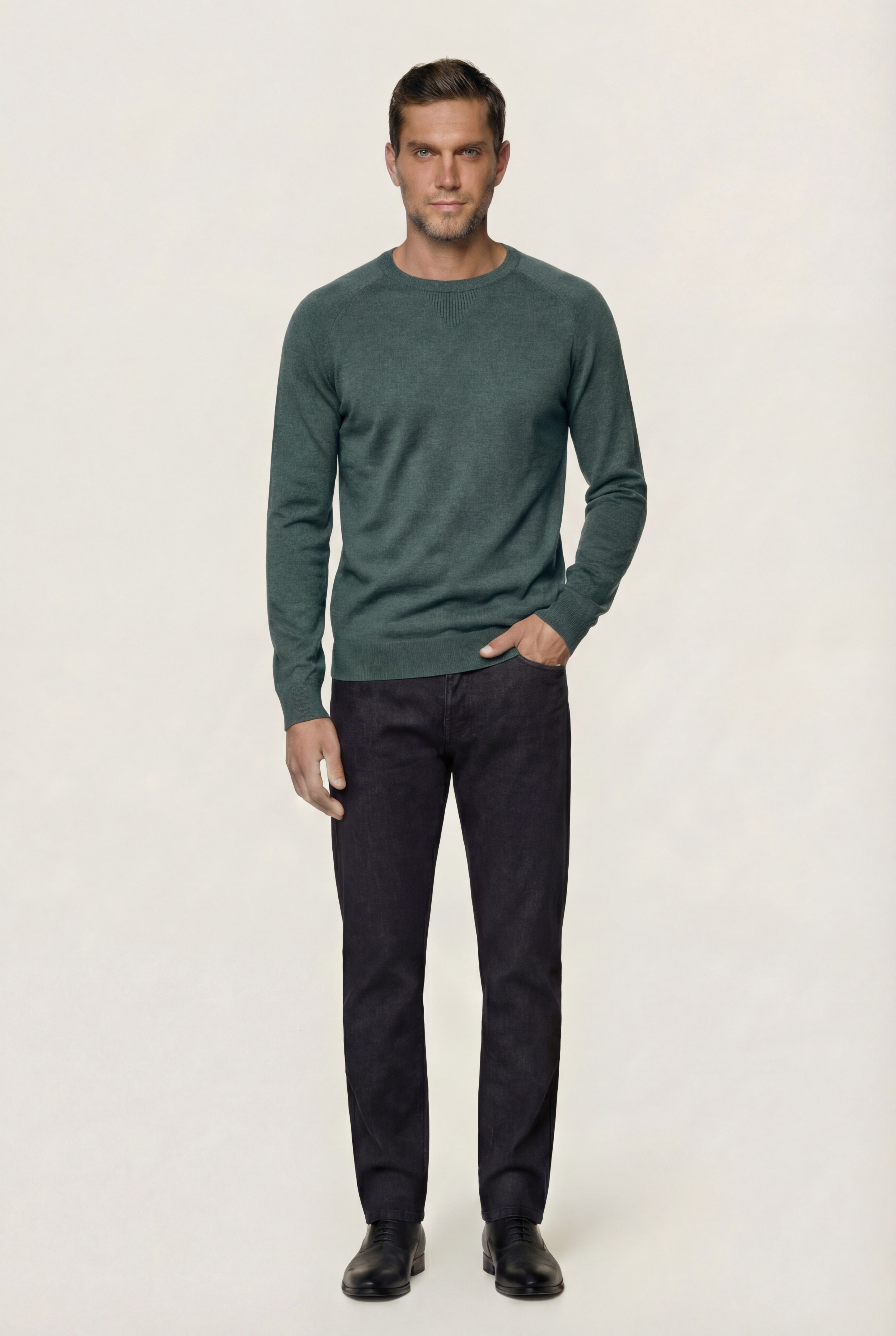 • Приталенный силуэт, Круглый, Однотонный, Зеленый